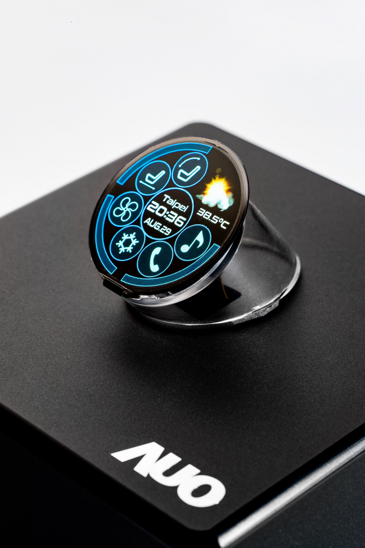 AUO partners with PlayNitride to demonstrate the 1.39-inch round Micro LED display with world’s highest pixel density up to 338PPI, suitable for automotive design and wearable devices.