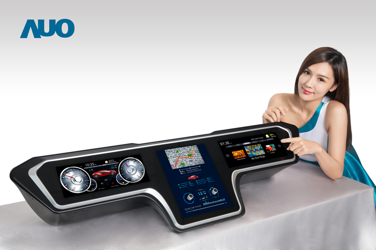 AUO’s ultra high resolution vehicle cockpit display, combining the cluster, CID and front passenger seat displays